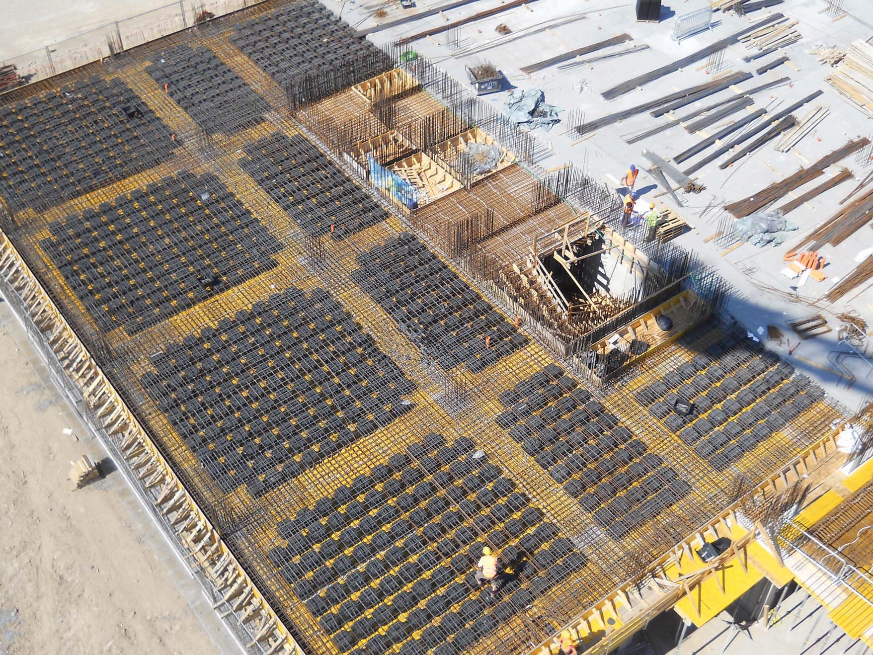 2、鋼筋用量少,在滿足結構要求的前提下,比普通梁板結構可以減少整體結構構件截面面積,降低主體結構鋼筋用量達25%-50%;